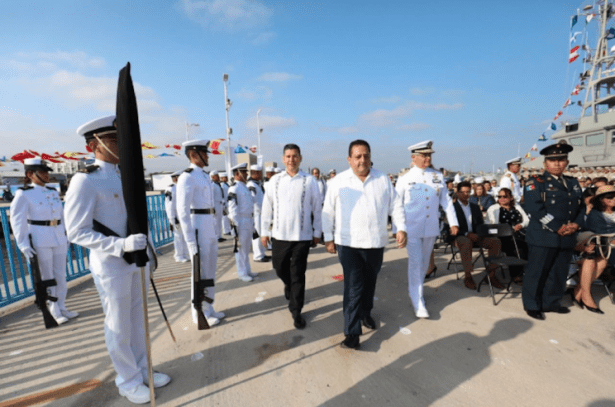 Finalmente Al término del acto protocolario, autoridades civiles y militares, abordaron la patrulla costera Tajin, para realizar un recorrido mar adentro desde donde se lanzaría una ofrenda floral en honor a los marinos caídos en cumplimiento de su deber. Inf. De NBCS Noticias