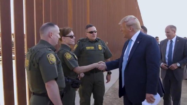 De ahí, Trump partió al muro fronterizo y a las 3:00 de la tarde ingresó por la intersección de las calles Vía de la Amistad y Enrico Fermi, a metros de México, donde una decena de personas se reunieron sobre la calle por la que ingresó para verlo ingresar en medio de un fuerte convoy escoltado por patrullas, policías en motocicletas y agentes del Servicio Secreto, así como de la Patrulla Fronteriza.