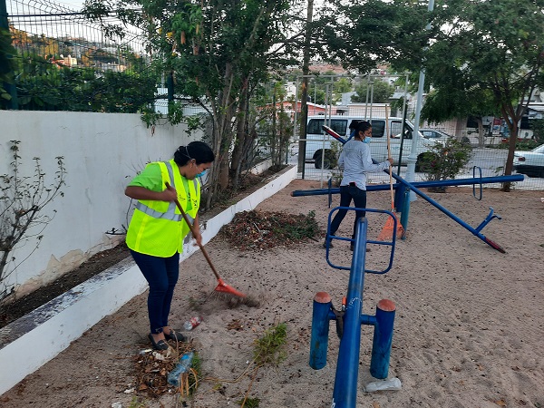 Una intensa jornada de limpieza se llevó a cabo en el parque de la colonia Agustín Olachea, como parte de la rehabilitación y mejora de estos espacios públicos en la ciudad, labor que realizó el Instituto Municipal de la Juventud (IMJ) junto con la Coordinación de Parques y Jardines de la Dirección de Servicios Públicos Municipales.