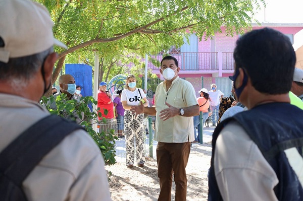 La labor realizada en el parque de la colonia Agustín Olachea fue supervisada por el Presidente Municipal, Rubén Muñoz, felicitando al IMJ por esta iniciativa, en la que suman a los jóvenes y a la comunidad, comprometiéndose con los vecinos de este sector a reforzar la seguridad en el área, para que los niños, jóvenes y familias de esta zona, puedan disfrutar de estos espacios públicos en mejores condiciones.