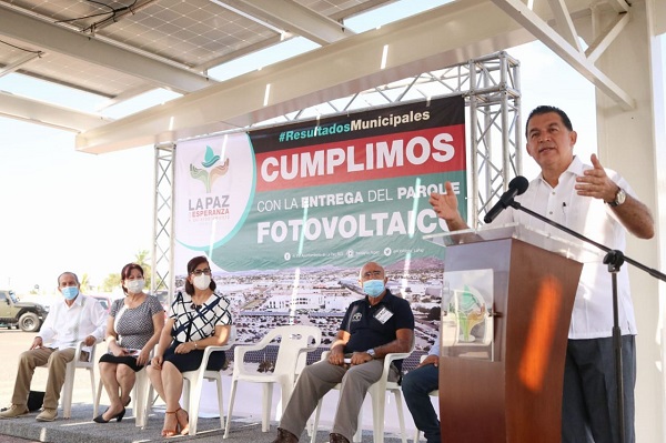 Con ahorros registrados de hasta el 70% en el pago de energía eléctrica en los últimos tres meses (junio, julio y agosto) que se traducen en 361 mil pesos de ahorro en comparación con el mismo periodo del 2019, el Presidente Municipal Rubén Muñoz entregó este martes, la obra de construcción del Parque Fotovoltaico Municipal con interconexión a la red de la Comisión Federal de Electricidad (CFE), siendo La Paz, el municipio pionero que apuesta por este tipo de proyectos energéticos que favorecen al medio ambiente.