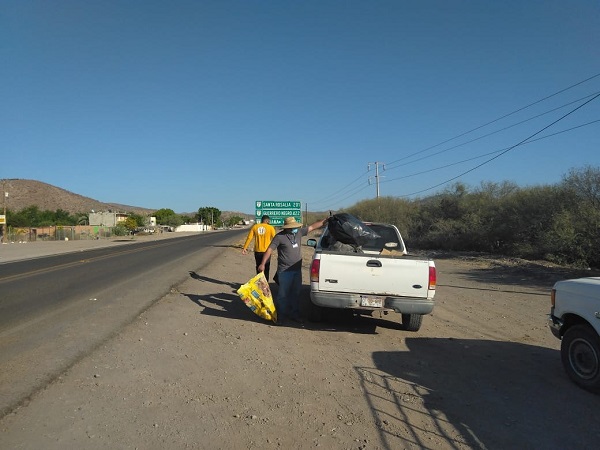 En este sentido, el titular de dicha Dirección informó que el objetivo fundamental de esta jornada fue el retirar todo tipo de material plástico, como los son bolsas, botellas, desechables, llantas, así como cartón y demás residuos que debido a los vientos son esparcidos a lo largo de la zona carretera, afectando el medio ambiente y la imagen de la cabecera municipal, y que por instrucciones de la Alcaldesa Arely Arce Peralta, se llevó a cabo previendo la temporada de vientos en la que se encuentra la comunidad.