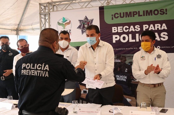 24 nuevos profesionistas integrantes de la Dirección General de Seguridad Pública, Policía Preventiva y Tránsito Municipal de La Paz, recibieron este lunes su certificado de terminación de estudios superiores, en un acto encabezado por el Presidente Municipal Rubén Muñoz Álvarez, en donde además otros 19 elementos fueron reconocidos por haber finalizado su educación media básica y media superior.