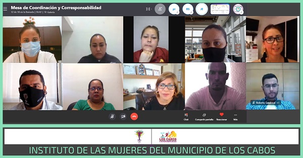 Cabe destacar que la reunión se desarrolló este viernes 02 de octubre, a través de la plataforma Skype, y fue encabezada por la directora general del Instituto de las Mujeres del Municipio de Los Cabos (IMMLC), Lorena Cortés Torralbo, con el apoyo de Jesús Joaquín Escobar Espinoza de la Dirección de Gestión de Programas y Políticas Públicas ProEquidad y Erika Guadalupe Castro Olachea de la Dirección de Capacitación del IMMLC.