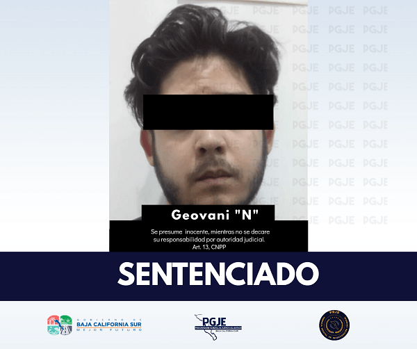 La Procuraduría General de Justicia del Estado (PGJE) informa, que el martes 20 en el Centro de Justicia Penal de Cabo San Lucas, en audiencia de individualización de sanciones, obtuvo del Tribunal de Enjuiciamiento, sentencia de 15 años de prisión contra una persona del sexo masculino identificado como Esteban Geovany “N” por el delito de violación equiparada de menor.