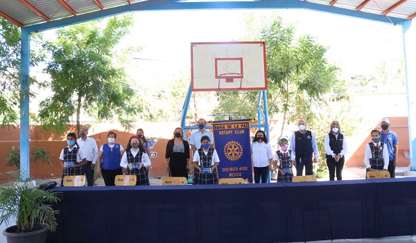 Durante la entrega oficial de los equipos que se realizó en la plaza cívica del plantel cumpliendo con las medias sanitarias de la nueva normalidad, y en la que estuvo presente Oscar Guillermo Nava Amaya, gobernador del Distrito 4100 de Rotary International, la directora de la institución educativa reconoció el apoyo de la organización altruista que en todas las regiones del país y del mundo implementa estrategias y programas encaminados a fortalecer la salud y educación de las niñas y los niños.
