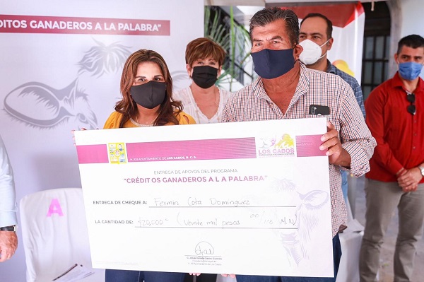 Buscando apoyar a uno de los sectores más afectados por la pandemia de coronavirus, -a través de la Dirección Municipal de Desarrollo Rural y Pesca, a cargo de Leonel Cota Cárdenas-, la alcaldesa Armida Castro realizó la entrega simbólica de apoyos del programa “Créditos Ganaderos a la Palabra”, por medio del cual se erogarán $4.5 millones de pesos.