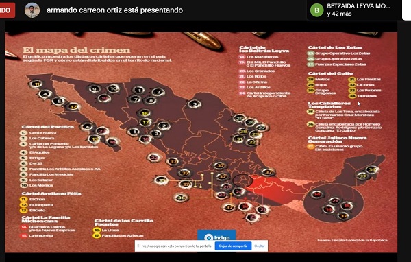 Así expresó el especialista en temas de seguridad, capitán Armando Carreón Ortiz durante la conversación que sostuvo mediante plataforma digital con alumnos de las carreras de Criminología y Derecho de los campus La Paz y Los Cabos de la Universidad Mundial.