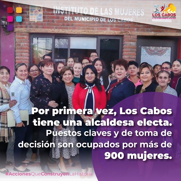 Gracias a la lucha que inició hace 67 años, hoy las mujeres de Los Cabos son partícipes en el sector público y privado; prueba de ello es que por primera vez, en Los Cabos fue electa una mujer como presidenta municipal, la C. Armida Castro Guzmán. Continuando con la lucha, a través de buenas prácticas de las políticas públicas de género, en el XIII Ayuntamiento los puestos claves y de toma de decisiones son ocupados por mujeres.
