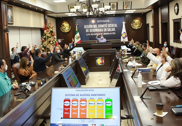 En presencia de los representantes del sector Salud, de los municipios de Los Cabos, La Paz, Loreto, Mulegé, del alcalde de Comondú y los representantes de las Fuerzas Armadas, se destacó la importancia de situar a Loreto en el nivel 4 del sistema de alertas sanitarias para Baja California Sur, pues se trata de una medida sensata y razonable para evitar que se continúen multiplicando los casos.