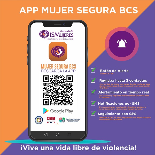 El Instituto Sudcaliforniano de las Mujeres (ISMujeres) intensifica en diversas colonias de la entidad la campaña para que más sudcalifornianas tengan acceso y usen la aplicación móvil “Mujer Segura BCS”, herramienta que contribuye a vivir en un entorno social y familiar libre de cualquier tipo de violencia, comentó la directora de la dependencia, Imelda Montaño.