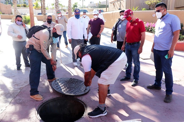 Con el objetivo de erradicar los contantes derrames de aguas residuales en La Marina de Cabo San Lucas, servidores públicos del XIII Ayuntamiento de Los Cabos realizaron un recorrido durante el que verificaron la situación de las trampas de grasa de restaurantes y hoteles que se encuentran en dicha zona.