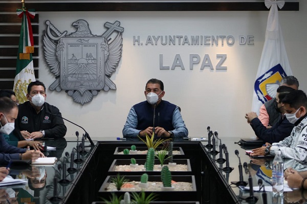 La mañana de este lunes, siendo encabezada por el Presidente Municipal Rubén Muñoz, se llevó a cabo una reunión de trabajo con las áreas operativas del XVI Ayuntamiento de La Paz y otras instituciones, con la finalidad de dar el correspondiente seguimiento a los protocolos sanitarios determinados para el municipio desde el pasado viernes, una vez que se realizó el cambio en el Sistema de Alerta Sanitario de BCS (semáforo Covid) que pasó al nivel 5 (color naranja estado crítico) dado el aumento de casos positivos en la entidad.