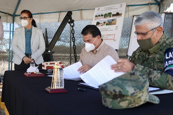 Dichas instituciones, respectivamente representadas por el Comandante de la II Zona Naval, el Vicealmirante Luis Javier Robinson Portillo Villanueva, así como, por el Presidente Municipal Rubén Muñoz Álvarez, el Secretario General Alejandro Mota Trasviña y la Síndica Municipal Martha Judith Páez, hicieron la firma del documento mediante el cual, se permitirá dar continuidad a los trámites para el proyecto ejecutivo, posterior licitación y ejecución de la obra del parque en mención.