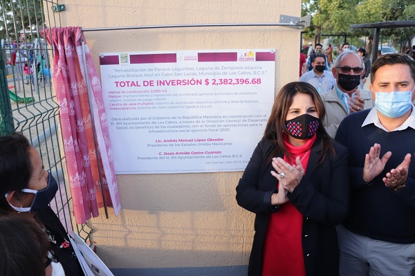 Las familias de la colonia Lagunitas hoy disfrutan de un parque digno, en buenas condiciones y con seguridad, luego de la entrega que realizó la presidenta municipal de Los Cabos, Armida Castro Guzmán, con una inversión superior a los $2.3 millones de pesos a través del FAIS ejercicio fiscal 2020.