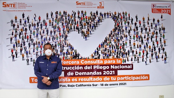 Gutiérrez Domínguez expresó que, la consulta es un valioso ejercicio que contribuye a profundizar en la cultura democrática del SNTE, para conformar con las propuestas de todos los Trabajadores de la Educación agremiados a la Sección 3 del SNTE en B. C. Sur, el Pliego Nacional de Demandas 2021 que nuestro Sindicato presentará, como cada año, al titular de la Secretaría de Educación Pública.