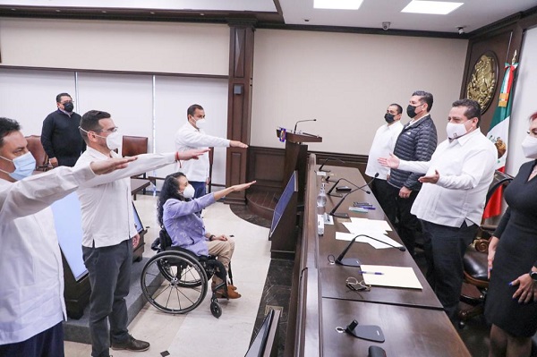 En ese tenor, y durante una reunión en la Sala de Gobernadores de Palacio de Gobierno, Mendoza Davis tomó protesta a los que ocuparán dichos encargos, es decir, a Servando Espinoza Villavicencio como encargado de la Contraloría General, a Javier Solís Hernández al frente del INSUDE, a Yazmith Bataz Carballo como directora del ISIPD, y a Rigoberto Bustos Alvarado como director general de Eventos.