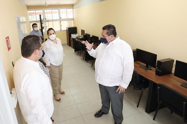El mandatario estatal realizó un recorrido por las instalaciones en compañía de la señora Gabriela Velázquez de Mendoza, presidenta del Sistema DIF del Estado, el secretario de Educación Pública, Gustavo Cruz Chávez, el titular del ISIFE, Carlos Rivas Lizaola, así como la directora de la Institución, Marielena Fong Amador, donde expresó su satisfacción porque las nuevas instalaciones ofrecen la seguridad y comodidad que requieren los alumnos para su preparación.