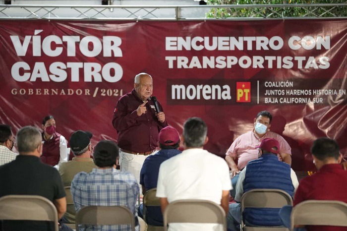 Con un público conformado por concesionarios, choferes y transportistas de materiales diversos, Castro Cosío delineo parte de sus propuestas de gobierno, precisó que será un gobernador por la salud de los sudcalifornianos al impulsar la reorganización del sector para favorecer a todos; asegurar finanzas sanas con ahorros que permita destinar mayores recursos a educación, deporte, cultura y vivienda; un programa hídrico que contemple, entre otros aspectos, una planta desaladora en La Paz que no afecte a la bahía; y dará cuenta frecuente de la administración de gastos de todas las dependencias, pues ya no habrá dispendios y erogaciones que ofenden a la sociedad.