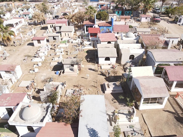 Con la finalidad de garantizar la seguridad de las personas que visitan los panteones de Los Cabos, personal de la Dirección General de Servicios Públicos trabaja en el retiro de maleza, basura, así como la poda de áreas verdes y mantenimiento general de los 17 panteones con los que cuenta el municipio.
