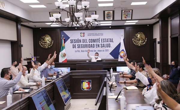 El Comité Estatal de Seguridad en Salud aprobó este día la decisión de mantener el nivel tres del Sistema Estatal de Alertas Sanitarias para todos los municipios de Baja California Sur, esto debido a que la pandemia muestra una contención, como lo refleja la disminución en el número de casos activos. “Las noticias son halagadoras, pero esto no quiere decir que hemos superado la pandemia por covid”, precisó el gobernador Carlos Mendoza Davis.