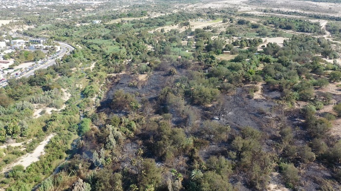 Por último, se informa que dentro del polígono afectado por el incendio forestal no se han encontrado animales heridos, únicamente la flora de la zona (carrizos y palmeras) se vio afectadas con este incendio forestal. Finalmente, se hace un llamado a la población para que reporte cualquier actividad sospechosa dentro del Estero de San José del Cabo al teléfono 9-1-1, o bien, al teléfono (624)-142-2812 de la Dirección General de Ecología y Medio Ambiente.