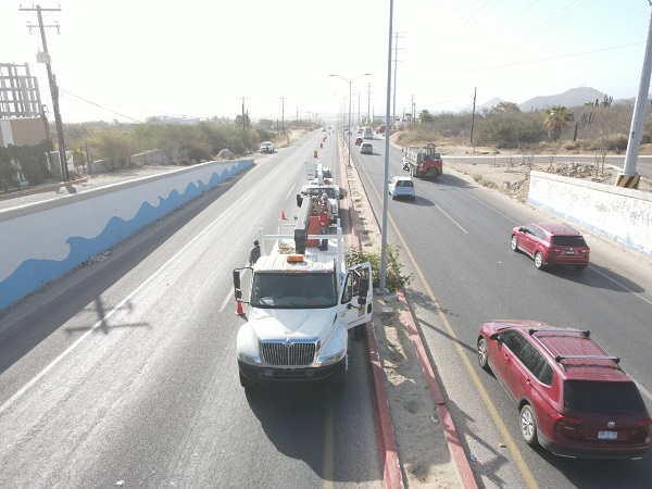 Con la intención de mejorar la visibilidad y garantizar la buena imagen de Cabo San Lucas, el Gobierno que encabeza Armida Castro Guzmán continúa trabajando en el mejoramiento del alumbrado público, por lo que en esta ocasión fueron instaladas más de 42 luminarias en el camellón central de la carretera Transpeninsular con dirección a la ciudad capital.