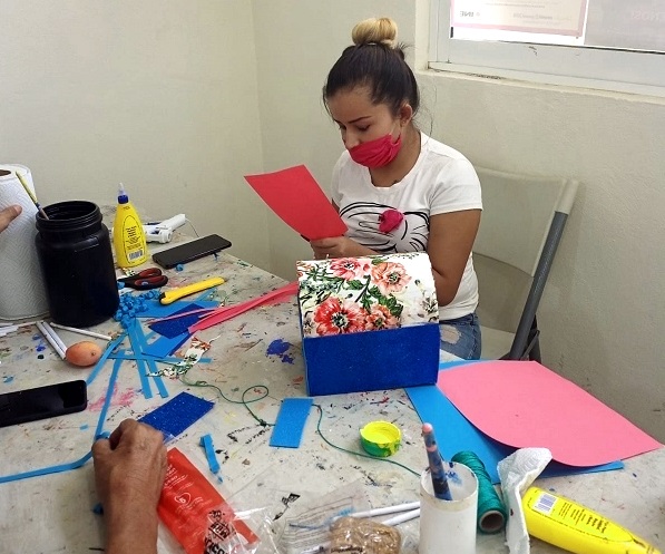 “Se está trabajando con niñas, niños, madres y padres de familia que están integrados a dicho programa, en grupos reducidos y programados debido a la contingencia sanitaria por COVID-19”, explicó, al tiempo que detalló que estas capacitaciones de manualidades llevan vigentes aproximadamente un mes, con la finalidad de proporcionar a los interesados una herramienta que en un futuro pueda ser útil para su economía.