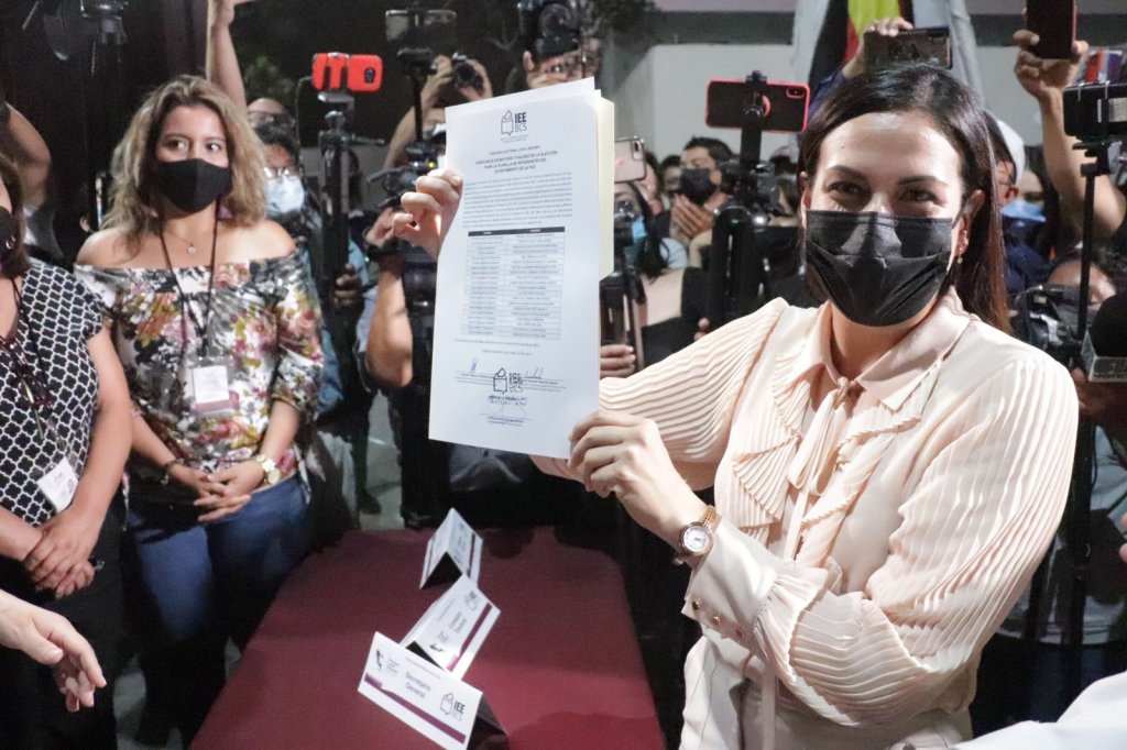 Acompañada de su familia, dijo que el día de hoy se concreta el trabajo de muchas y de muchos, vamos a dar todo el corazón de la manera más responsable, “vamos a gobernar para todas y para todos: los jóvenes, las mujeres, los grupos indígenas, la comunidad LGBTQ+; soy una mujer joven responsable y comprometida y de verdad que mi corazón está con ustedes, estoy muy contenta por el resultado de hoy, y junto con nuestro Gobernador el profe Víctor, vamos a hacer un gran trabajo, no les vamos a fallar, vamos a dar esa lucha en conjunto con todas y con todos”.