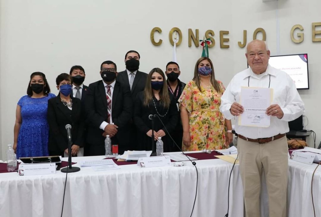 Durante la sesión del organismo electoral, la consejera presidenta, Rebeca Barrera Amador, hizo entrega de dicho documento a Castro Cosío, quien encabezó la coalición MORENA-PT “Juntos Haremos Historia”, para el periodo 2021-2027.