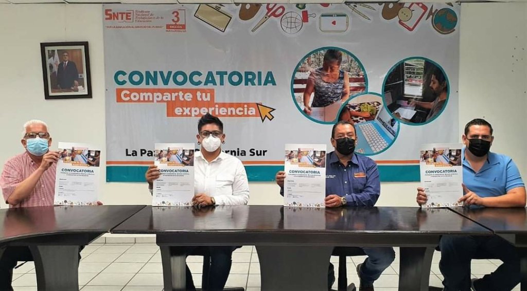 La Sección 3 del SNTE en Baja California Sur, presentó la Convocatoria “Comparte tu experiencia”, la cual fue lanzada el pasado 16 de junio del año en curso por el Sindicato Nacional de Trabajadores de la Educación (SNTE) y signada por el maestro Alfonso Cepeda Salas, secretario general del SNTE, con el objetivo de conocer la experiencia de las maestras y los maestros de México durante la pandemia por COVID19, además de reconocer su vocación, la innovación de la enseñanza a distancia y sus buenas prácticas en la docencia, informó el profesor José Nicolás Gutiérrez Domínguez, secretario general de la Organización Sindical en Baja California Sur.
