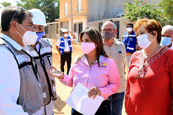 “Hoy estamos en la posibilidad de dotar del vital líquido porque ya se realizó el saneamiento, ya se estableció el drenaje y solo falta que sea colocado el concreto y las banquetas, un trabajo que ha representado un gran esfuerzo y lo tengo que decir, en plena pandemia es uno de los grandes retos, el seguir avanzando en obra pública”, destacó la alcaldesa.