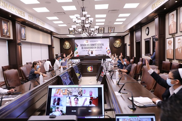 En sesión del Comité Estatal de Seguridad en Salud, acordó por unanimidad mantener en el Sistema Estatal de Alertas Sanitarias al municipio de Los Cabos en el nivel 4 y a La Paz, Comondú, Loreto y Mulegé, en el nivel 5, basados en la situación epidemiológica por covid-19 que guarda la entidad. “Para seguir avanzando, es necesario seguir las medidas de prevención, y que quienes no se han vacunado o completado su esquema, lo hagan, porque se trata de la herramienta más importante para enfrentar la pandemia, y que si bien no es una protección absoluta contra los contagios, sí disminuye síntomas y defunciones”, señaló el gobernador Carlos Mendoza Davis”,