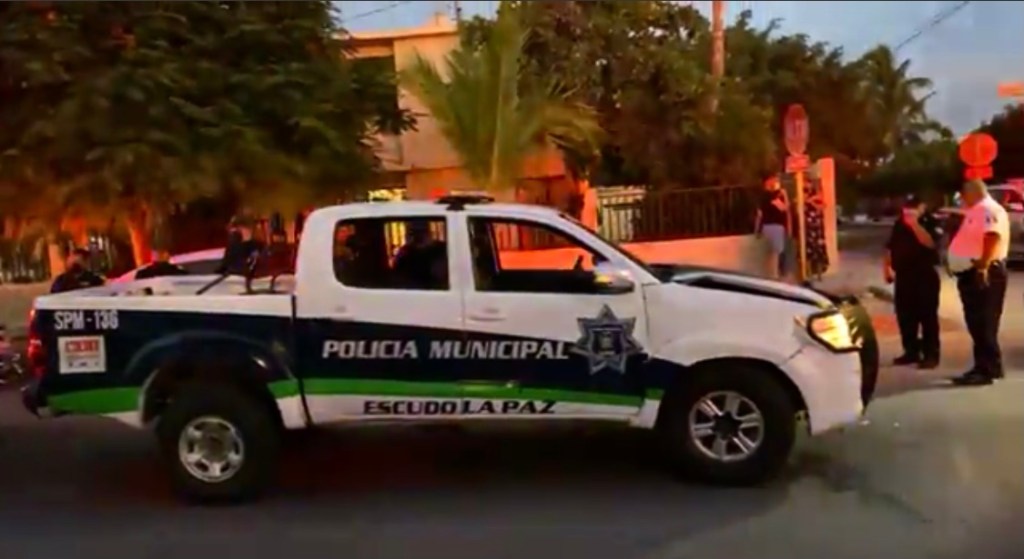 La Paz, Baja California Sur.- Presuntamente una falla en el sistema de frenos de una patrulla de la Policía Municipal, provocó que está se impactara contra un vehículo que se encontraba haciendo alto.