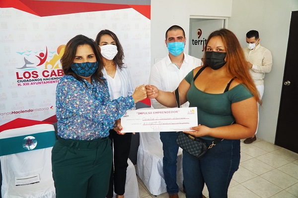 La Alcaldesa de Los Cabos, Armida Castro Guzmán, realizó la entrega de un total de $75 mil pesos en estímulos económicos a 10 jóvenes emprendedores de la delegación de Miraflores, cada joven recibió un incentivo de $7 mil 500 pesos que se erogaron a través del Programa “Impulso Emprendedor 2021”.