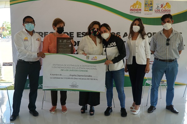 La Alcaldesa de Los Cabos, Armida Castro Guzmán, encabezó la entrega de estímulos económicos por $370 mil pesos a 24 entrenadores y atletas ganadores de los pasados juegos nacionales CONADE 2021; dicha entrega se efectuó a través del lnstituto del Deporte del Municipio de Los Cabos (INDEM), y se llevó a cabo en la unidad deportiva, Rodrigo Aragón Ceseña, ubicada en San José del Cabo.