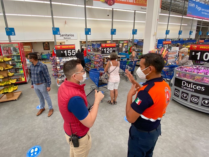 Por otra parte, Santillán Castillo aseveró que los recorridos se realizan de manera aleatoria a lo largo de toda la geografía municipal; en ese sentido, destacó que se verifica que en la entrada de los establecimientos se cuente con tapetes desinfectantes, se tome la temperatura corporal, se dote de gel antibacterial y, que tanto trabajadores como clientes porten el cubrebocas de manera correcta.