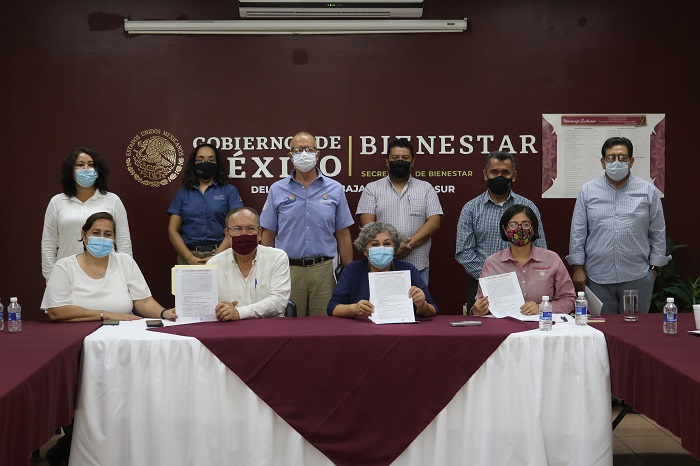 En el acto protocolario que se celebró en las instalaciones de la delegación de la Secretaría de Bienestar, acompañaron a la secretaria de Educación el delegado de SEMARNAT, Jesús Echevarría Haro, así como la delegada de Bienestar y coordinadora de Programas Federales en Baja California Sur, Diphna Yanssén Weichselbaum.