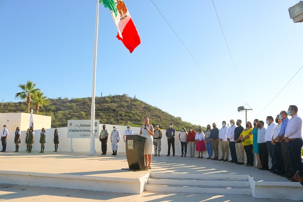 En la apertura del evento, el izamiento de bandera estuvo a cargo de la alcaldesa Edith Aguilar Villavicencio, en compañía de las diputadas locales Paz Ochoa y Teresita de Jesús Valentín, representantes del Sector Naval, la 40 Zona Militar, Guardia Nacional, Gobierno Estatal, integrantes de Cabildo y la Delegación.