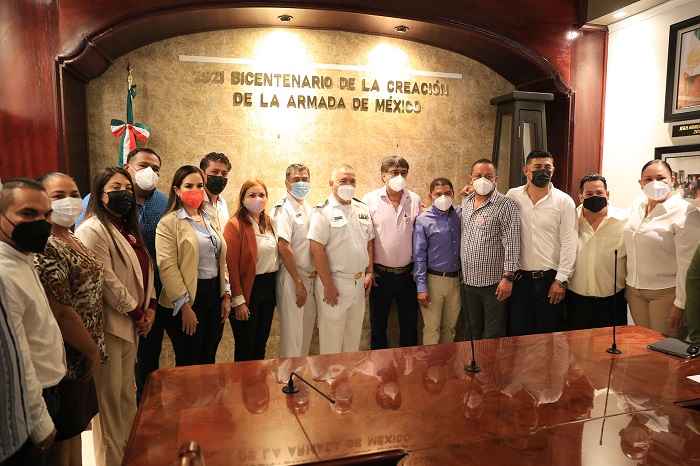 A fin de recordar a los presentes y futuros ediles el profundo agradecimiento del pueblo de Los Cabos con sus marinos, el alcalde Oscar Leggs Castro encabezó el acto cívico conmemorativo al centenario de fundación de la Secretaría de Educación Pública, el bicentenario de la creación de la Armada de México y la develación en letras doradas de la leyenda: “2021 Bicentenario de la Creación de la Armada de México” en la sala de cabildo “Profesor Juan Pedrín Castillo”.