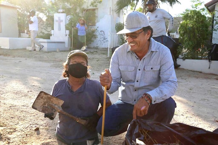 Para garantizar la limpieza de los panteones municipales, -sobre todo este próximo Día de Muertos-, el alcalde de Los Cabos Oscar Leggs Castro y servidores públicos de la XIV Administración llevaron a cabo una campaña de limpieza en el panteón “Cabo Cielo” ubicado en la delegación de Cabo San Lucas, ya que se esperan las visitas en los tradicionales festejos del 1 y 2 de noviembre.