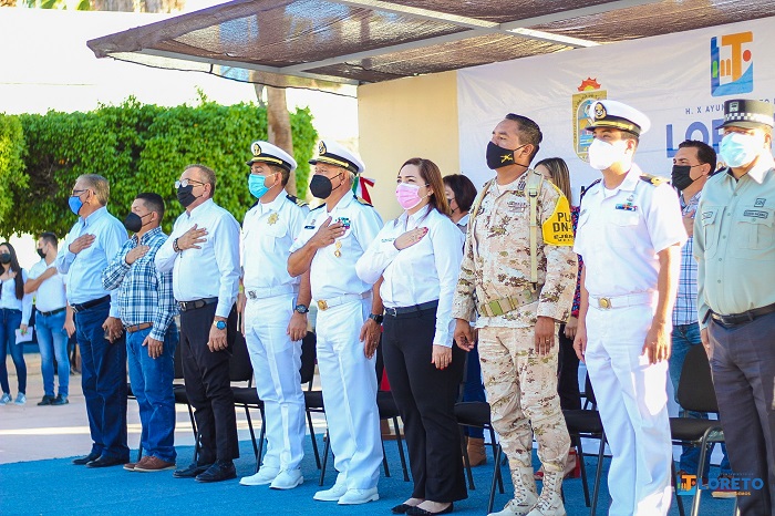 “Ese primer establecimiento Jesuita denominado Loreto está de fiesta, el día de hoy y sus habitantes, celebramos con satisfacción un aniversario más de su fundación. con gran orgullo llevamos nuestro gentilicio en alto”, concluyó diciendo la alcaldesa, quien estuvo acompañada por Autoridades militares; Blas Gámez Castro, representante del Gobierno del estado; Roberto Luján, en representación de la alcaldesa de Mulegé Edith Aguilar Villavicencio ; profesor Francisco Drew, titular de servicios regionales; Rigoberto Gómez Gutiérrez, síndico; los regidores, Anaí Romero; Delfina Rivas; Rosalía Romero; Efraín Meza; Anastasio Talamantes; profesor Jaime González, director de la Escuela Normal CREN “Marcelo Rubio Ruiz”.