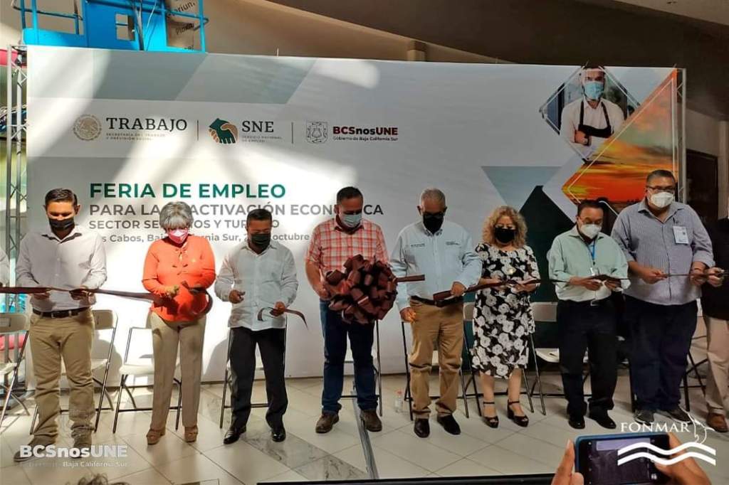 Martín Inzunza Tamayo Director Técnico del Fondo para la Protección de los Recursos Marinos de Baja California Sur (FONMAR), en representación de José Alfredo Bermúdez Beltrán Secretario de Pesca, Acuacultura y Desarrollo Agropecuario del Estado de Baja California Sur, asistió a la inauguración de la «Feria del Empleo para la Reactivación Económica Sector Turismo Los Cabos 2021», que se llevó a cabo en Plaza Patio en Cabo San Lucas.