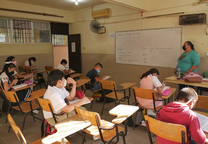 La funcionaria comentó que el modelo presencial avanza gracias al respaldo de las madres, padres de familia y tutores, quienes con el compromiso de las maestras y maestros y la participación de alumnas y alumnos han logrado que la mayoría de las escuelas públicas y privadas brinden atención en sus aulas.