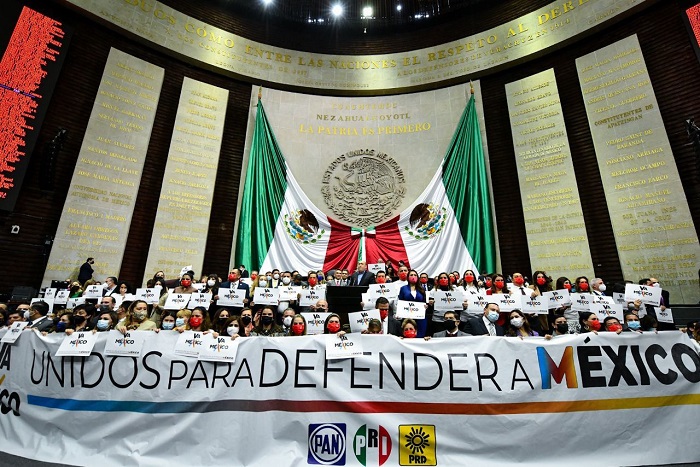 En conferencia de prensa en el Palacio Legislativo de San Lázaro, junto con los dirigentes nacionales de los partidos Acción Nacional (PAN), Marko Cortés y de la Revolución Democrática (PRD), Jesús Zambrano, así como los coordinadores parlamentarios de las tres fuerzas políticas en la Cámara de Diputados y los alcaldes de la alianza de todo el país, dijo que es un tema de acuerdo, porque es un tema de la gente.