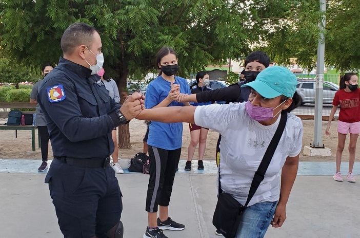 La titular de prevención del delito, explicó que esta actividad se desarrolló a petición de padres de familia de dicha colonia, con el propósito de brindar a las y los jóvenes, conocimientos básicos de defensa personal que les permita saber cómo actuar ante situación que pueda vulnerar su seguridad e integridad.