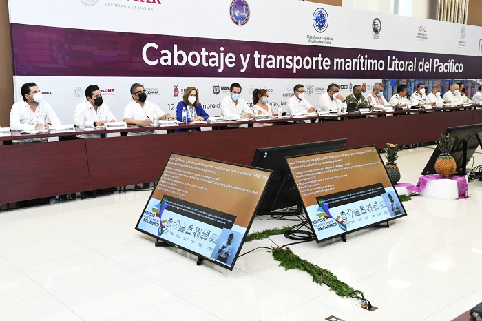 El evento organizado por la Secretaría de Marina, la Coordinación General de Puertos, el puerto de Lázaro Cárdenas y el gobierno de Michoacán, tuvo como objetivo la presentación del acuerdo para impulsar la plataforma logística del Pacífico, el cual busca el fortalecimiento de la ruta conformada por doce puertos, entre ellos los de Baja California Sur.