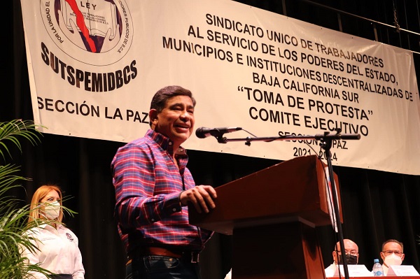 En representación del gobierno estatal, el secretario general Homero Davis Castro, asistió a la ceremonia de toma de protesta del Comité Ejecutivo Sección La Paz, del Sindicato Único de Trabajadores al Servicio de los Poderes del Estado, Municipios e Instituciones Descentralizadas (SUTSPEMIDBCS), que dirigirá Sergio Guluarte Ceseña, para el periodo 2021-2024.