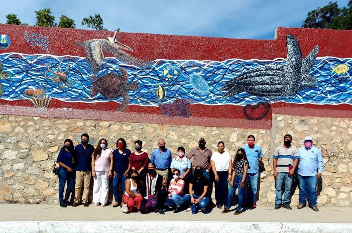 En el mismo marco, autoridades universitarias encabezadas por la Dra. Georgina Bravata, Jefa del Departamento Académico de Ciencias Marinas y Costeras, así como por el Mtro. Juan de Jesús Pérez, responsable de la extensión, develaron una placa alusiva a la obra, que busca crear conciencia acerca de la importancia de cuidar el gran capital natural que tenemos en el estado, particularmente marino.