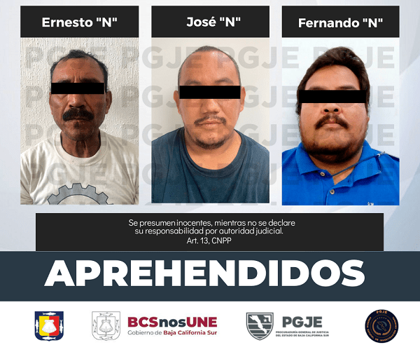 La Procuraduría General de Justicia del Estado (PGJE) de Baja California Sur, cumplimentó órdenes de aprehensión en contra de tres personas, quienes habrían participado en hechos ilícitos.